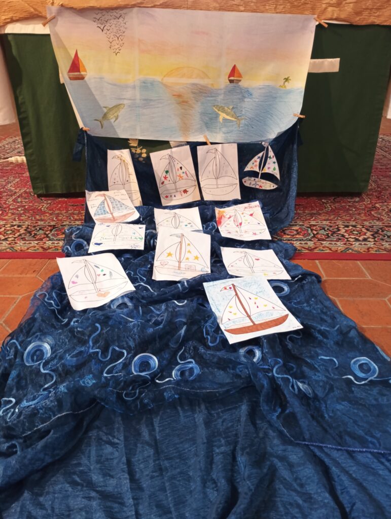 En amont, chaque classe avait dessiné un bateau représentant ses intentions pour l’année à venir. Puis, aux pieds de l’autel, les jeunes ont déposé une belle affiche préparée par les internes représentant la mer et les bateaux.